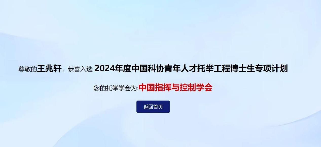 喜报丨我院博士王兆轩入选首批中国科协青年人才托举工程博士生专项计划