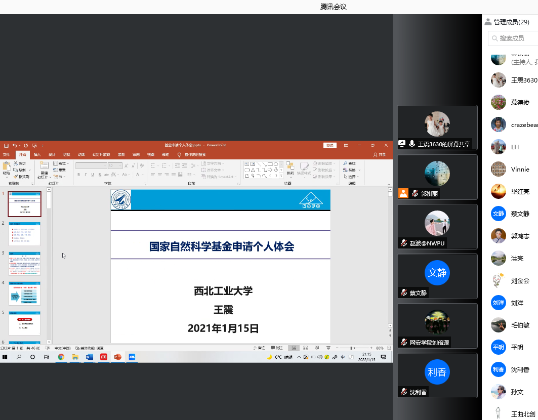 召开了线上会议,由王震书记为教师进行国家自然科学基金项目申报辅导。我院拟申报2022年基金项目的教师参加了本次会议,会议由我院科研副院长慕德俊主持。