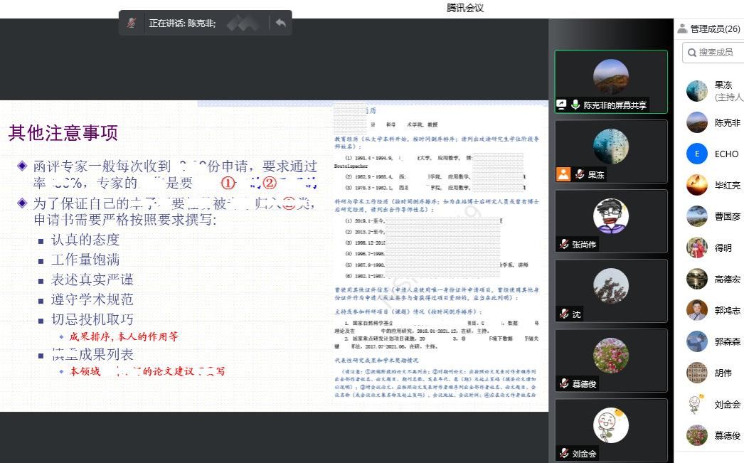 为进一步做好2023年度国家自然科学基金项目申报工作,2022年12月28日,漫蛙漫画 召开了国家自然科学基金项目申报辅导线上会议,本次会议特邀陈克非教授,我院拟申报2023年基金项目的教师参加了本次会议,会议由我院科研副院长慕德俊主持。