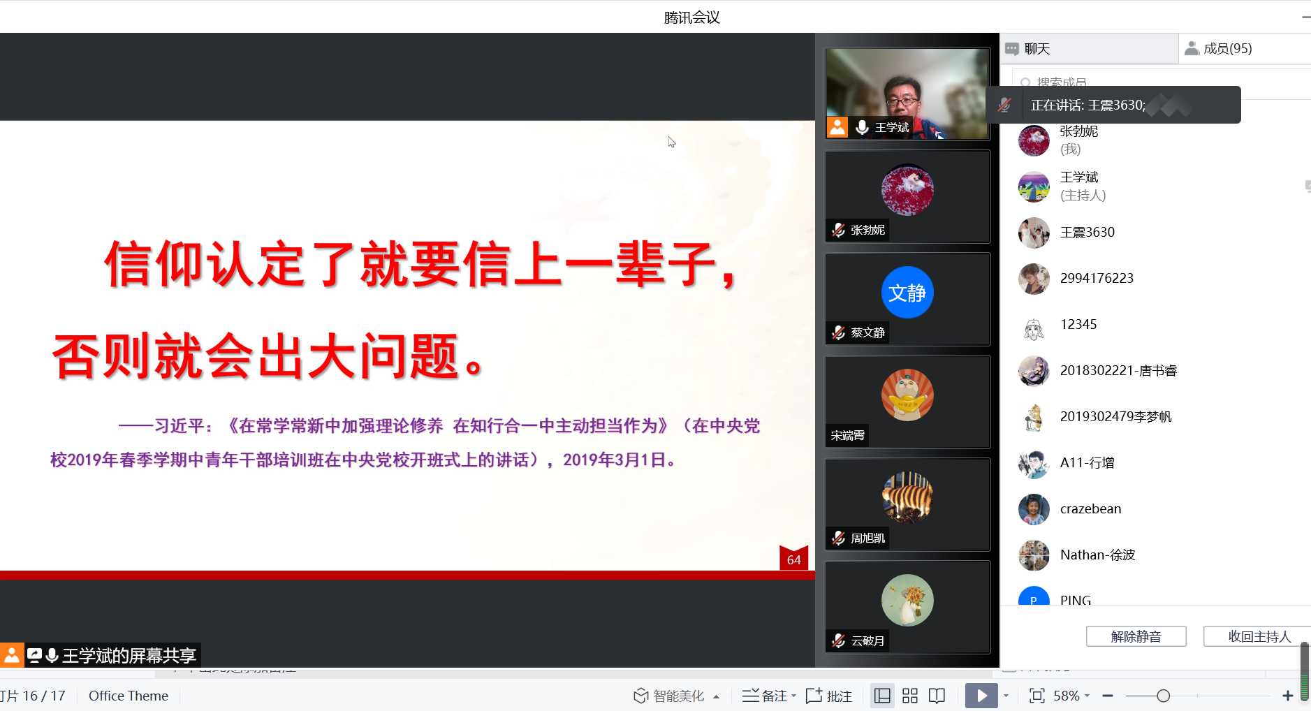 王震书记对王学斌教授的精彩报告表示了感谢,他强调学院全体师生一定要提高政治站位,要深刻把握十九届六中全会精神的核心要义,学深悟透“两个确立”的决定性意义,将十九届六中全会的学习内容转化为国家战略发展、学校“双一流”建设、学院内涵式发展的行动自觉。