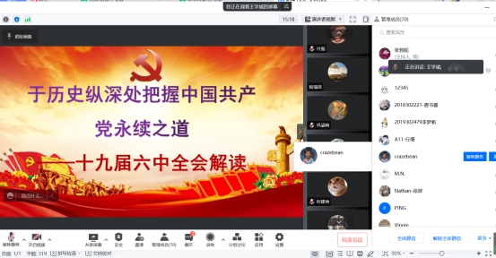 本次党课邀请了中央党校文史部教授,中国史教研室主任王学斌老师作《于历史纵深处把握中国共产党永续之道-十九届六中全会解读》专题党课。