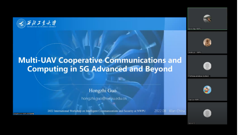 澳大利亚工程院院士、IEEE Fellow、悉尼大学Abbas Jamalipour教授做了题为“The Role and Challenges of Wireless Virtual Reality in Future Networks”的报告,围绕未来6G时代虚拟现实技术要求、挑战和安全风险进行了深入浅出的讲解;日本工程院院士、IEEE Fellow、日本东北大学NeiKato教授做了题为“6G Technologies for Supporting Smart IoT: Future Perspective”的报告,针对6G时代物联网关键技术和架构进行了系统性的分析和展望;IEEE Fellow、英国帝国理工学院BrunoClerckx教授做了题为“Rate-Splitting Multiple Access for 6G”的报告,对RSMA(Rate-Splitting Multiple Access)的原理和应用进行了详细介绍。此外,我院毛伯敏教授以Intelligent Resource Allocation and Task Scheduling in 6G Edge Networks为主题、郭鸿志副教授以Multi-UAV Cooperative Communications and Computing in 5G Advanced and Beyond为主题、于银菠副教授以The Security of Control Logic in Software: From Tradition to Intelligence为主题、张尚伟副教授以Design and Optimization of RSMA for Coexisting HTC/MTC in 6G and Future Networks为主题、刘倍源副教授以Optimal Beamformer Design for Millimeter Wave Dual-Functional Radar-Communication Based V2X Systems为主题、徐赛副教授以Intelligent Reflecting Surface Backscatter Communications为主题分别作了学术报告。