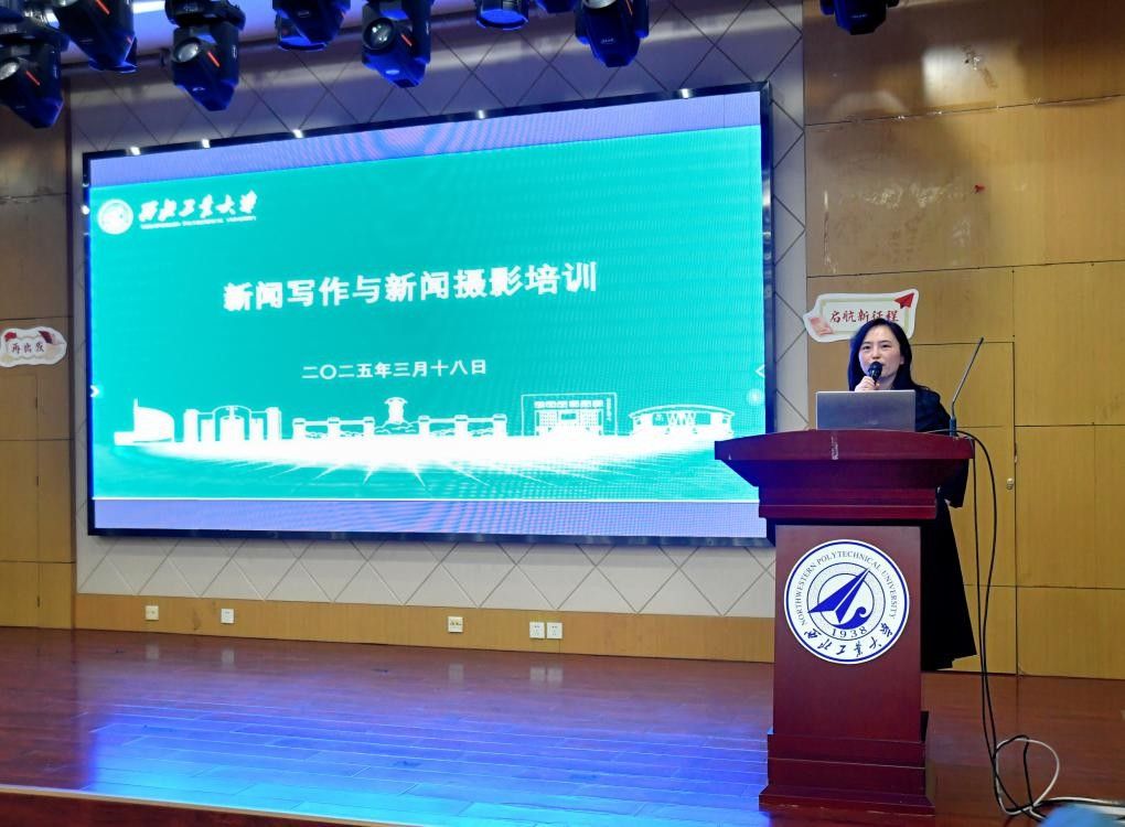 新闻写作培训环节,付怡从全国思想宣传工作会议精神和学校声誉对每个在校生以及校友的意义,强调做好大宣传工作的重要性,呼吁大家共同讲好西工大故事。简要介绍了学校融媒体中心的基本职能和宣传阵地及平台。详细阐述了新闻的五大要素和写作原则,并以丰富的典型案例深入浅出的将不同体裁新闻写作技巧和注意事项进行了详细的讲解。在谈及流媒体时代的新闻撰写时,从标题到内容,由形式至选材,进行了详实而深情的讲解。