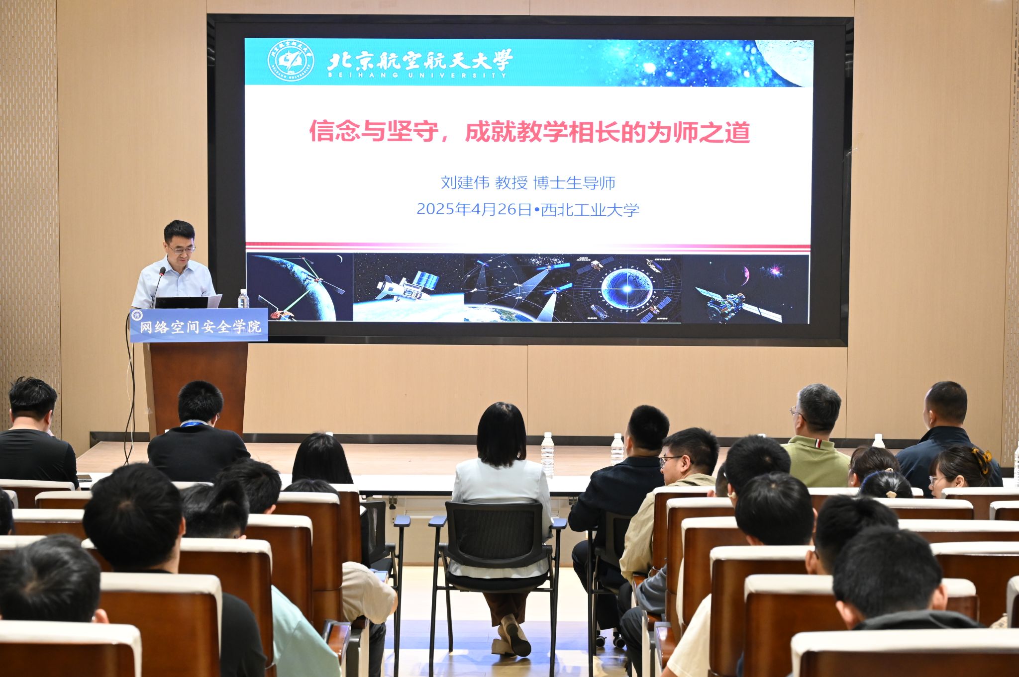 研究生导师育人能力,推动研究生教育高质量发展,4月26日下午16:00学院特邀北京航空航天大学刘建伟教授在长安校区教东A座开展交流讲座及专题导师培训。学院研究生导师及部分学生近100人参会。