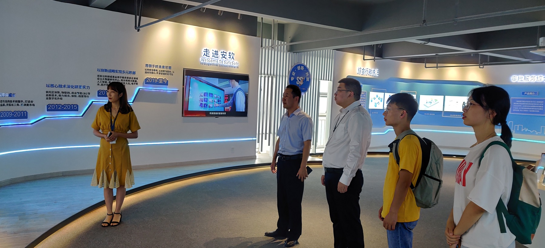 与两家企业签署了合作协议,共建大学生就业与实习基地。下午,调研组实地走访了安软科技集团,参观了公司产品展厅,并进行了座谈交流。