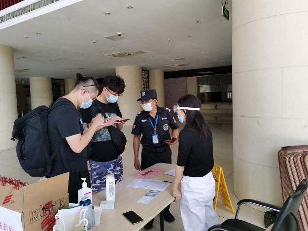 8月15日、8月16日是2018级信息安全专业学生到太仓报到的日子,网安学院为了方便学生,从早8:00到晚上22:00在学生公寓楼大厅设报到点,学院领导、学院太仓办公室、本科生学生辅导员等工作人员全员在岗,等候同学们的到来。根据太仓防控疫情要求,入住人员需扫描苏康码,并配备公寓提供的入住二维码,测量体温正常,登记个人信心后方可正式入住公寓,杜绝了集体住宿可能存在的防控隐患。