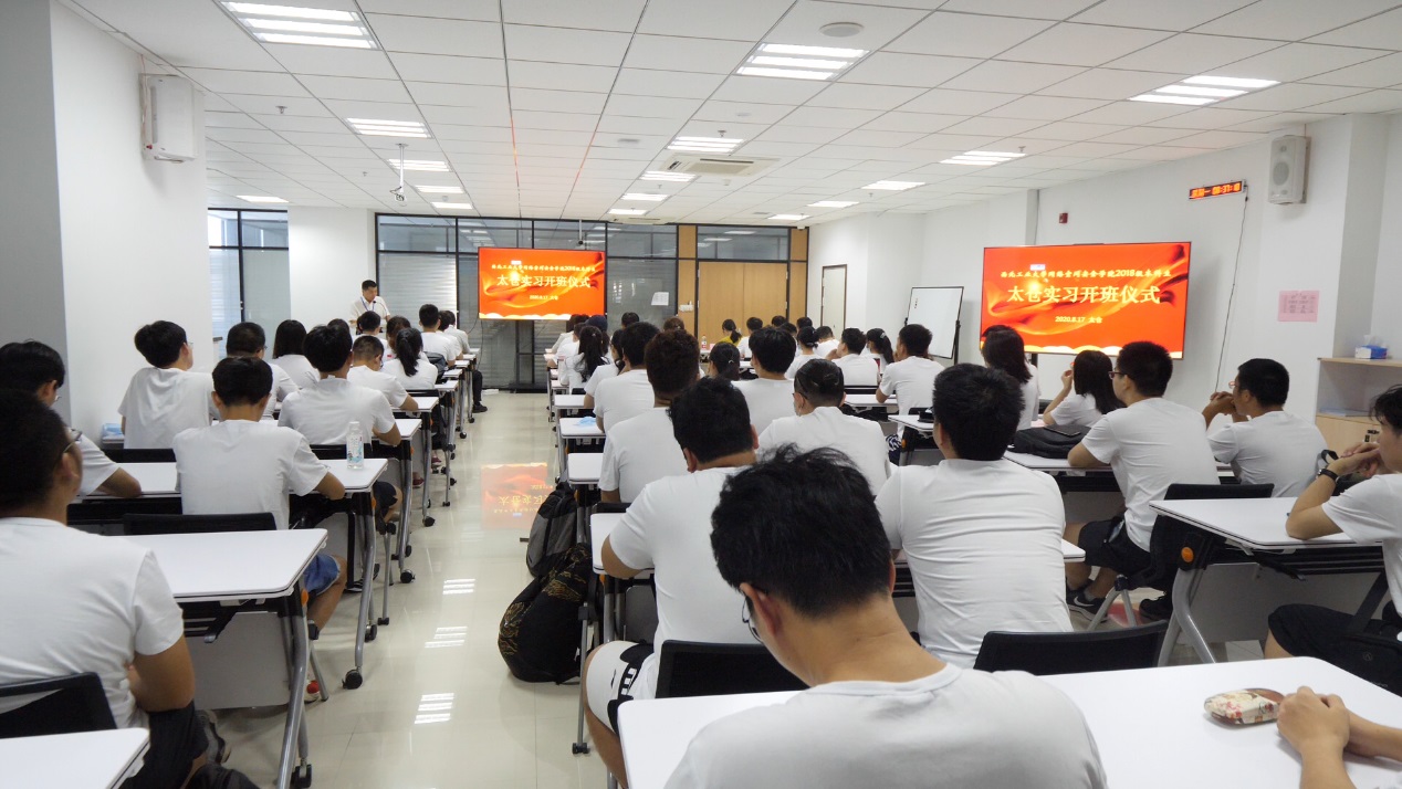 2018级本科生太仓实习开班仪式在长三角研究院隆重开幕。太仓市网信办副主任朱慧,团市委副书记陆菲,太仓校区管委会副主任兼长三角研究院副院长金秉乐,学院副书记王高祖,学院常务副院长张盛兵,副院长刘志强及2018级本科生参加了会议,大会由学院副书记王高祖主持。