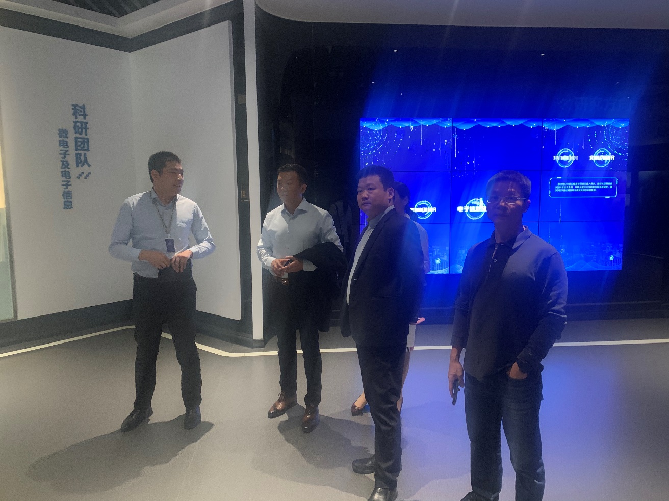 上午10点,宫健副主任陪同王毅然董事长参观了西工大长三角研究院一楼展厅,在长三角研究院九楼域园科技公司,董事长袁元先生陪同参观和介绍了该公司与西工大长三角研究院共建的虚拟仿真与人工智能研究院的情况。