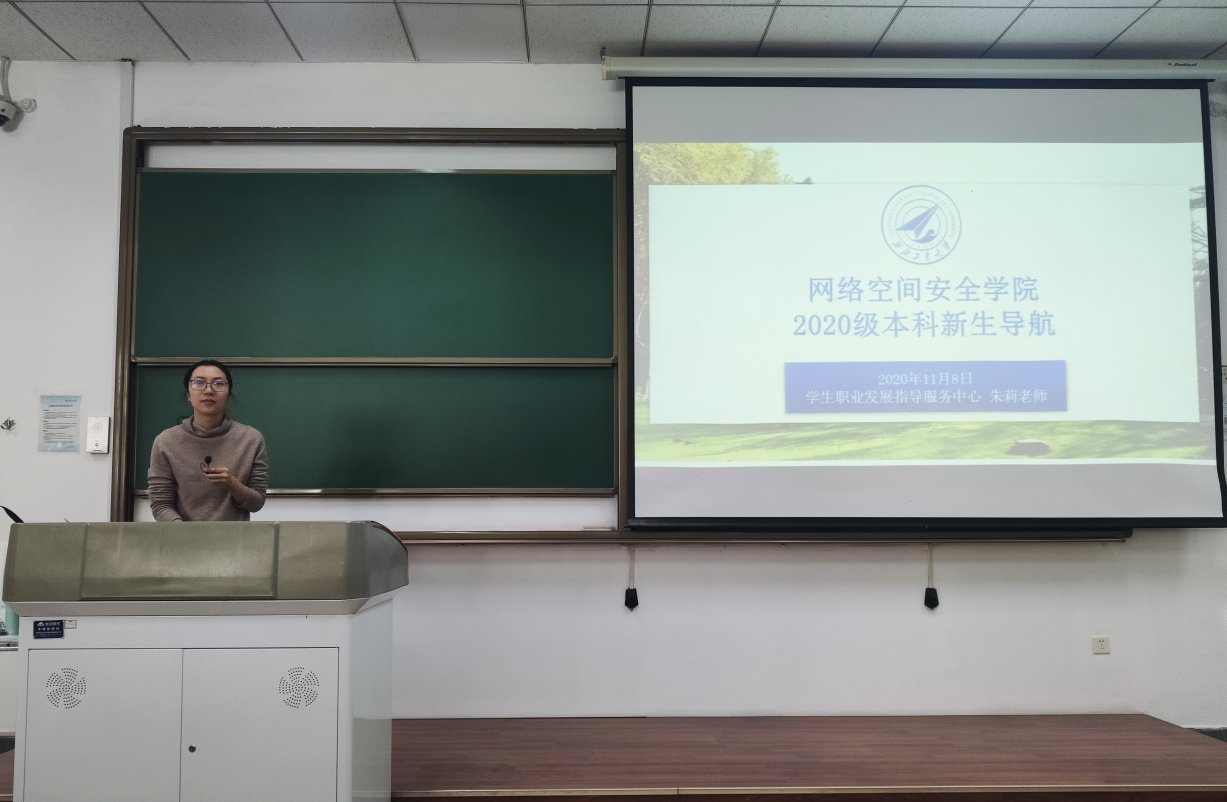 于11月8日下午邀请学生职业发展指导服务中心朱莉开展了“新生导航”——生涯规划主题讲座活动。学院党总支副书记王宁军主持本场讲座。