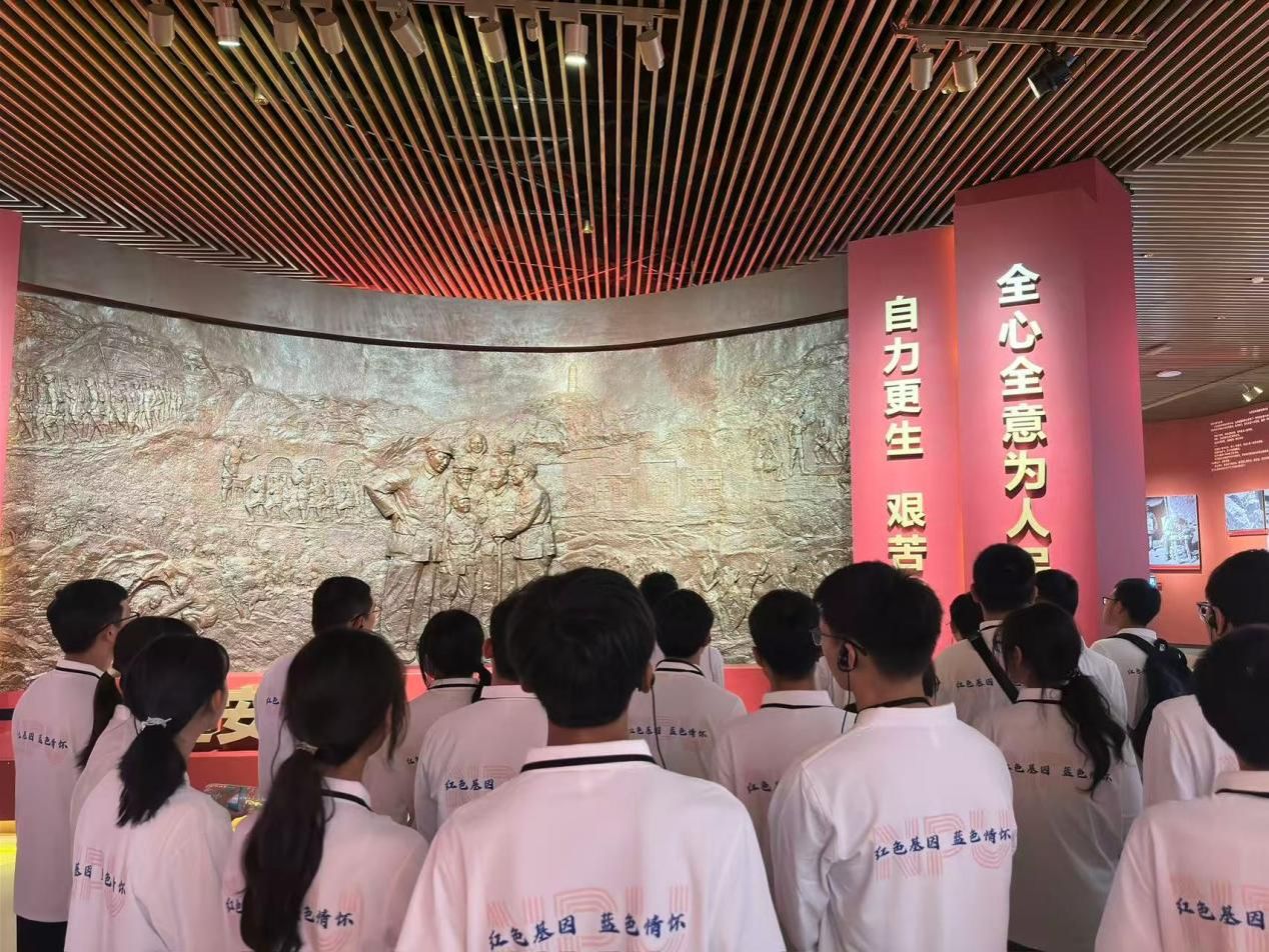 进入纪念馆,毛泽东、周恩来等老一辈革命家与中央警卫团的雕塑群像巍然屹立,他们昂首挺胸的姿态,瞬间将人们带回那个激情燃烧的革命岁月。在讲解员的引导下,队员们依次参观六个主题展厅。从土窑洞中摇曳的油灯微光,到南泥湾垦荒的金黄麦浪;从抗日军政大学的课堂,到整风运动的文献手稿,每一幅历史画面、每一件珍贵文物,都生动展现了党在延安十三年间领导中国革命从低谷走向胜利的光辉历程,让队员们深受触动。