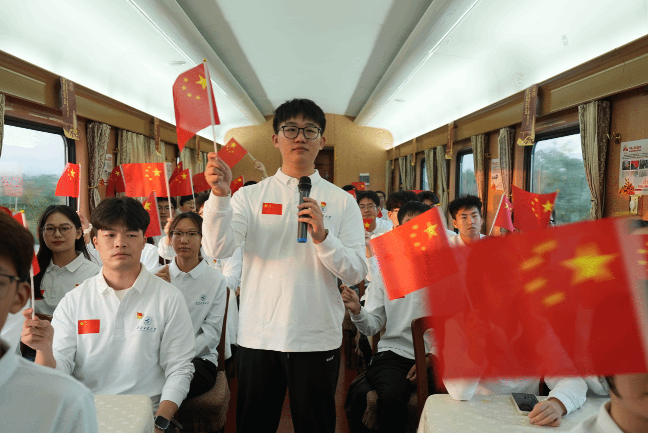 9月13日清晨,实践队乘坐陕西省首趟“到延安去—三秦学子圣地行”红色研学专列Y506,正式开启红色研学之旅。列车上,学校党委学生工作部精心策划的“火车思政课”精彩开讲。延安市委党校副教授刘杰,漫蛙漫画 校友、中国航空工业集团公司第一飞机设计研究院项目副总师黑文静,分别结合自身经历与感悟,为实践队讲授思政课,激励同学们将个人梦想与祖国需求紧密相连,在中国式现代化建设的征程中勇担使命、奋发有为。