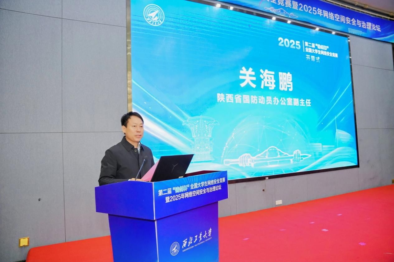 图为中共陕西省委网络安全和信息化委员会办公室副主任邓攀在开幕式上致辞