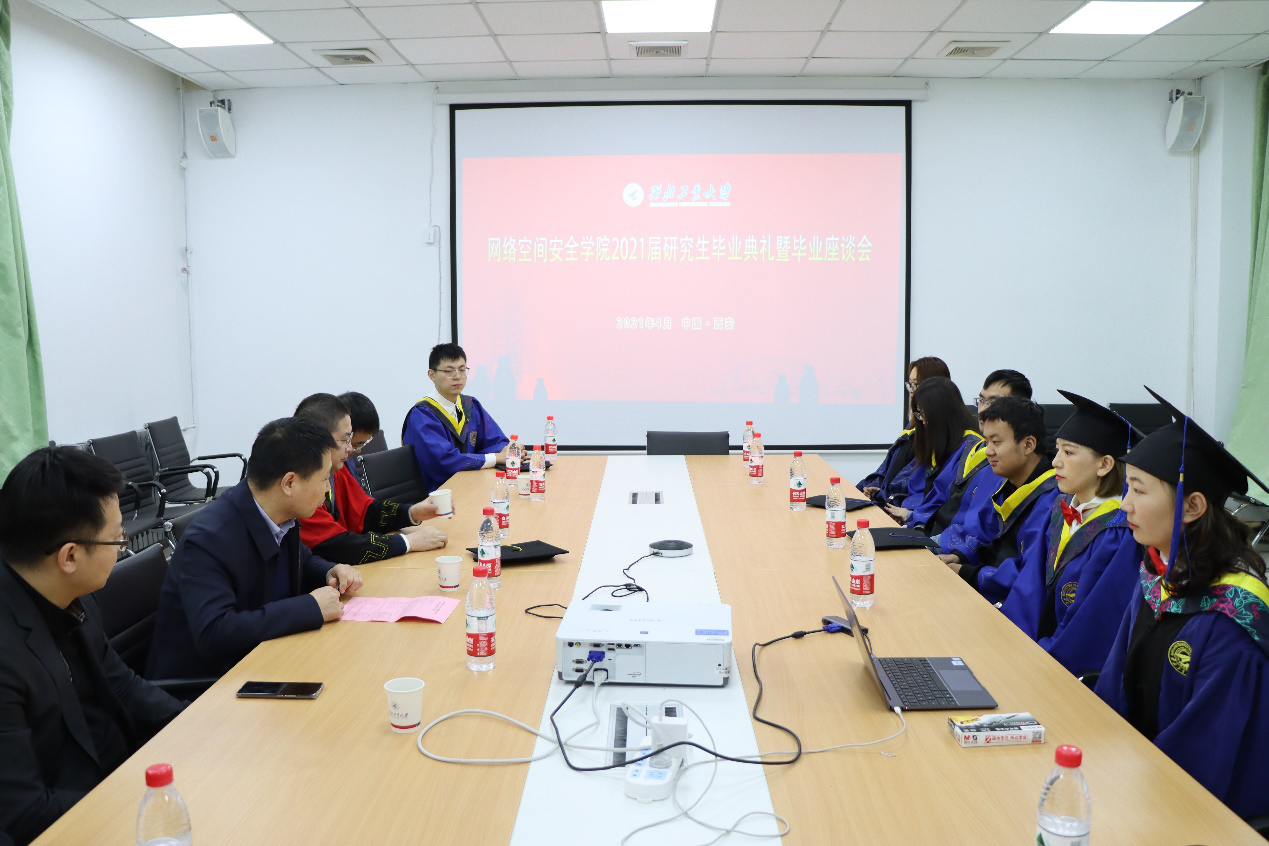 在翱翔学生中心西配楼举行了2021届研究生学位授予仪式暨师生座谈会。常务副院长张盛兵、副院长刘志强、副院长(挂职)郑玉山、研究生导师杨涛及11名毕业生参加了会议。会议由学院党总支书记王高祖主持。