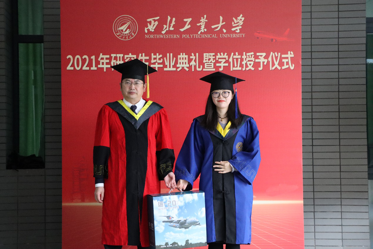 学位授予仪式上,常务副院长张盛兵、副院长刘志强分别为每位毕业生颁发了学位证书、拨穗。随后张盛兵副院长为每名毕业生发放了具有西工大特色的纪念品。