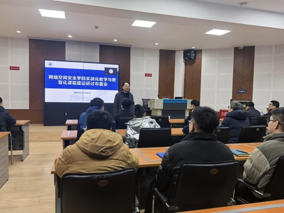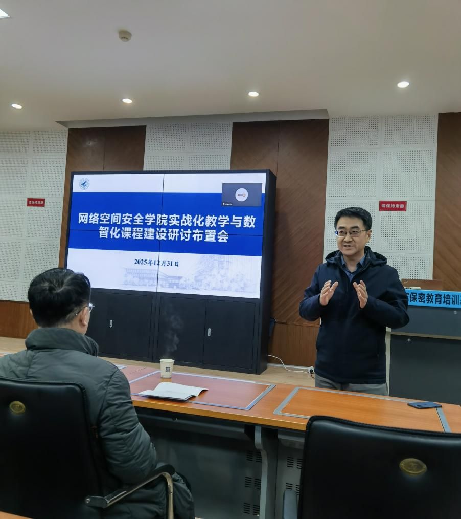 副院长刘志强围绕学院教学数智化升级与实战化教学能力提升作了重点报告。他详细介绍了学院正在推进的“数智化课程改造计划”“面向教学靶场的课程改造计划”以及“校园网教学靶场建设”进展情况,同时指出,为适应网络安全技术快速演进和产业对实战型人才的强烈需求,学院将依托校园网教学靶场平台,全面推进现有课程的数字化、智能化升级,打造一批对接国家网络空间安全战略、契合新工科建设要求的一流课程。他要求全体教师以此为契机,全面梳理所授课程,主动对接前沿技术与实战需求,积极参与课程资源升级与教学模式创新,共同打造一批具有高阶性、创新性和挑战度的优质课程。
