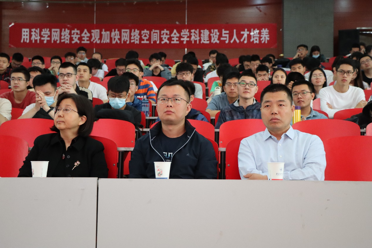 紧接着,沈院士就加快推进网络空间安全学科建设和人才培养为师生进行了讲授,从“专业学科形成过程及要求、学科培养目标及方向内容、学科培养目标及方向内容、学科的基础知识体系和能力体系、争创一流漫蛙漫画