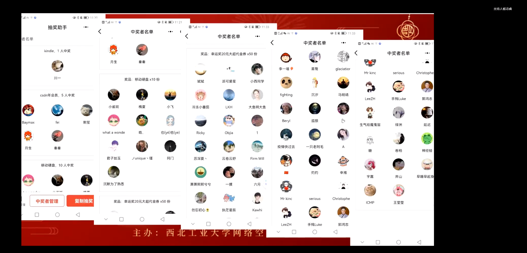 上半场表演,一首《春风十里》唱出了所有人在战“疫”艰难时刻的美好希冀,望“寒冬”早点散场,“暖春”快点到来,《建党百年--少年》更是唱出了青年一代的责任与担当,《小情歌》 琵琶独奏让人沉浸在如痴如醉的表演中,《say my name》炫酷的街舞表演将晚会节目推向了高潮,独创的书法表演使文字美与艺术美完美的融合。接下来,来自学院领导班子满满的新春祝福让大家精神倍受鼓舞。抽奖环节总是令人最为惊喜,丰厚的奖品最终花落谁家让人拭目以待。