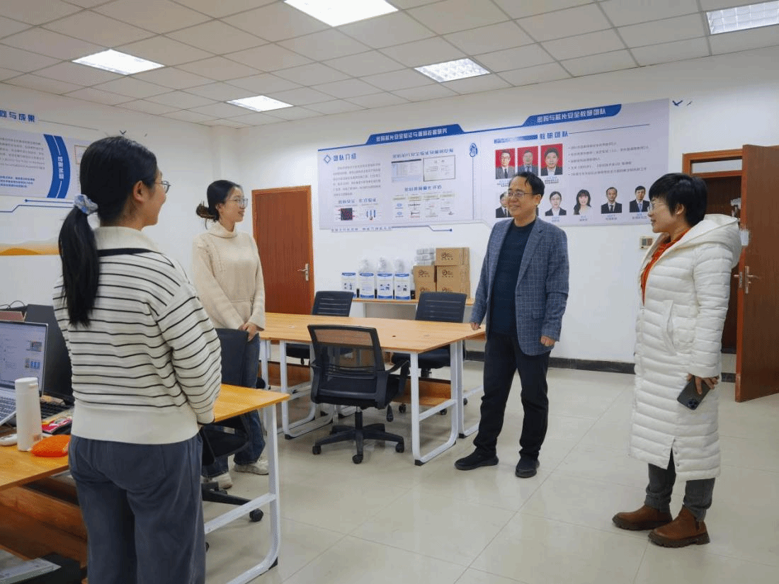 在教研室,检查组与学生面对面了解新学期在就业、科研、学习、生活方面的近况及困难,张文涛对各年级研究生在新学期伊始迅速投入科研工作的状态表示高度赞赏,指出当前我国网络空间安全领域人才缺口较大,这正是新一代青年学子奋发有为、投身这一领域的关键时刻,希望学生要立大志向、学真本领,为我国网络空间安全领域的建设与发展贡献自己的力量。