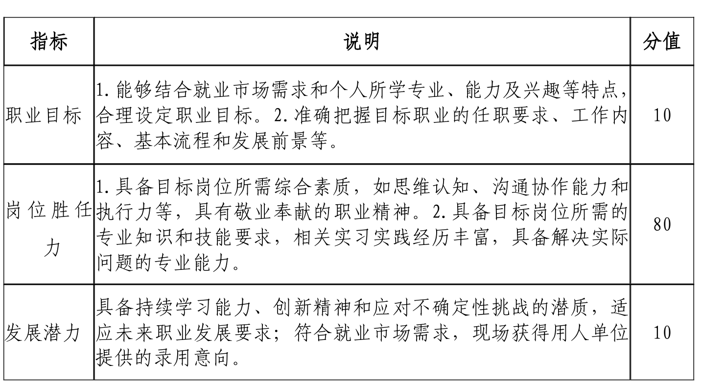 就业赛道评审标准包含职业目标、岗位胜任力、发展潜力,具体如下: