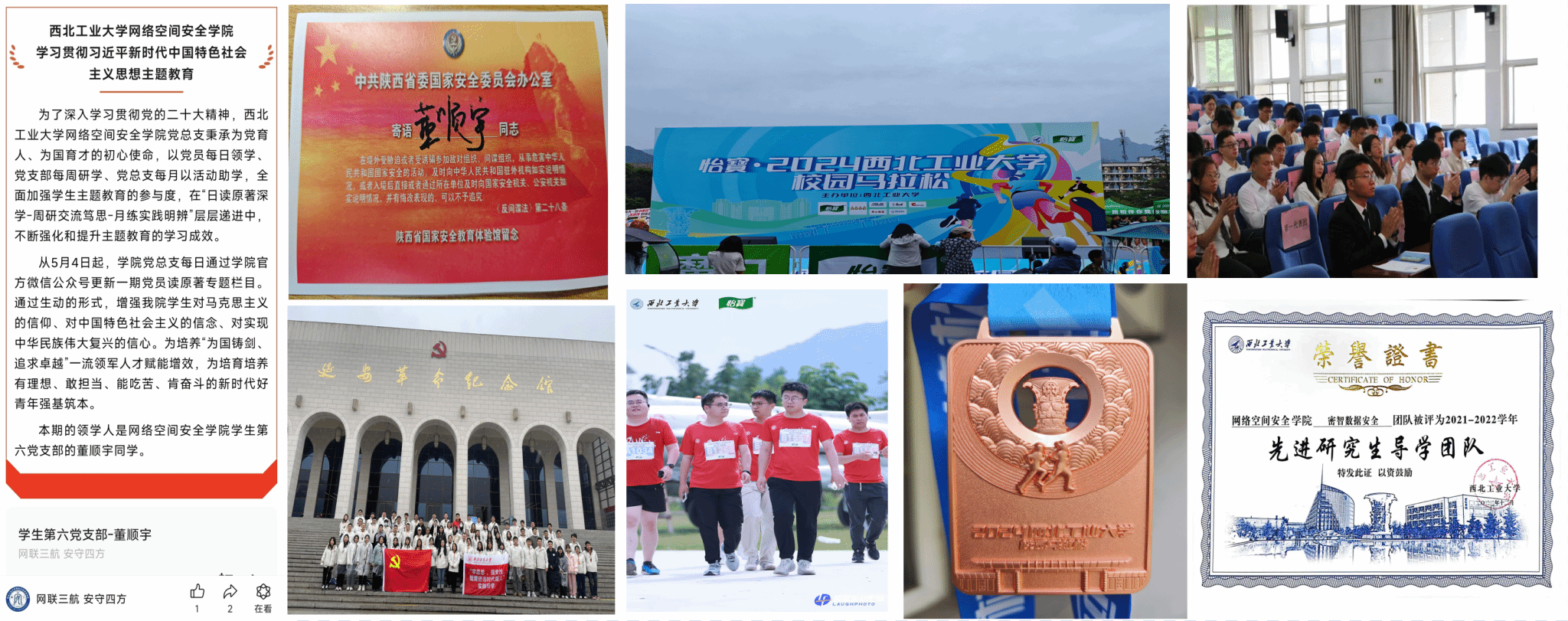 作为一名中共党员,董顺宇始终保持高度的社会责任感,积极参与各类党建和社会实践活动。在研究生期间,他积极参与党组织生活,认真学习党的理论知识,并以实际行动践行党员的先锋模范作用。多次参与学校及社会的志愿活动,发挥专业优势,为社会贡献自己的力量。除科研之外,他也关注个人综合素养的提升,积极参加体育、演讲、科创等活动,不断挑战自我,实现全面发展。