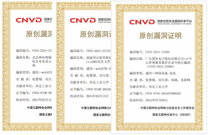 “优秀研究生”称号、二等奖学金及“优秀志愿者”等称号。在科研方面,她坚持“勇攀高峰,创新不止”,主持国家一流网安学院创新项目和校级硕创重点项目,并积极参与陕西省重点研发计划。研究成果涵盖多个前沿领域,发表CNVD高危漏洞3项,申请发明专利3项,登记软件著作权1项,并发表高水平学术论文1篇,展现了扎实的科研实力与创新能力。
