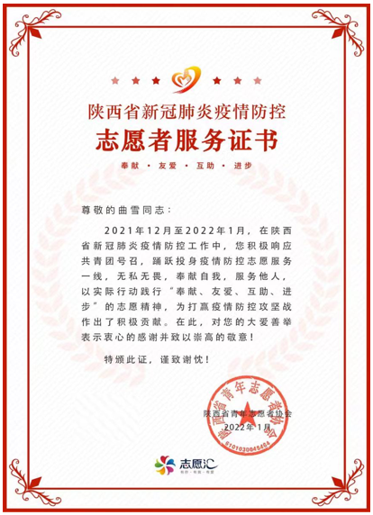 “我们的所见所悟,都是构成生活影片的一帧帧精彩瞬间。”曲雪说。研究生三年,她积极参加学校学院各项文体、社会实践与志愿者活动,多次获评院校级“优秀志愿者”,努力充实每个日子,在实践中淬炼美好青春。同时,她组织开展了师生座谈、职业规划帮扶、羽毛球赛等等系列活动,搭建了一个朋辈交流互动、共同成长的平台,为校园文化发展增砖添瓦。