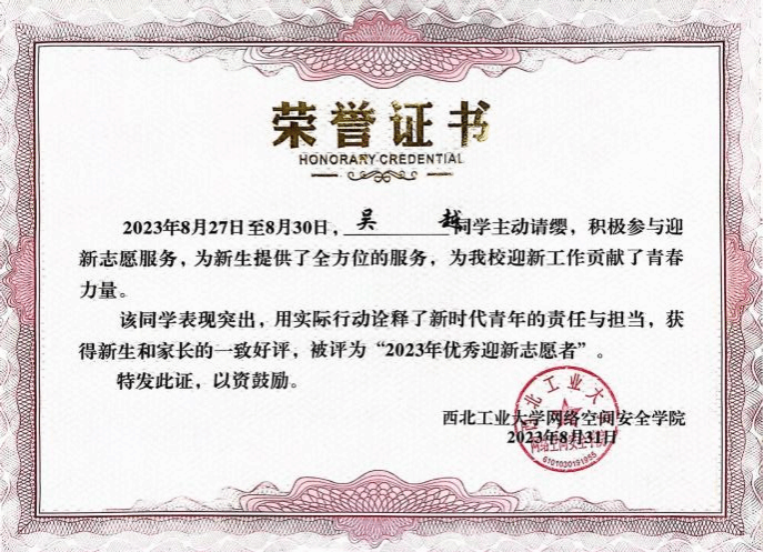 “优秀迎新志愿者”