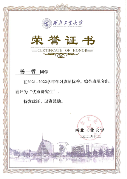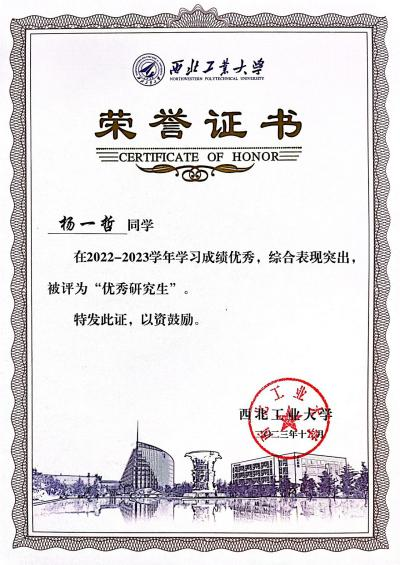 心之所向,素履以往;青衿之志,履践致远。从2017年到2024年,从本科生到研究生,再到走向工作岗位,西工大见证了我七载青春岁月。“余虽不敏,然余诚矣”,我一直真诚对待学习、工作和生活中的每一件事,坚信精诚所至,金石为开。回顾过往,既有良师益友相伴,也得到了学校和学院的悉心栽培,虽路途曲折,偶有迷茫,但我已成长为了勇敢而坚定之人。告别之际,心怀感恩,感谢同学们的陪伴和鼓励,感谢学校和老师的培养和教育,也感谢全力以赴的自己。云程发轫,万里可期,未来,我将秉承西工大“公诚勇毅”的校训和“三实一新”的校风,走向航天科工集团某研发部门的工作岗位,继续为国防事业贡献力量。