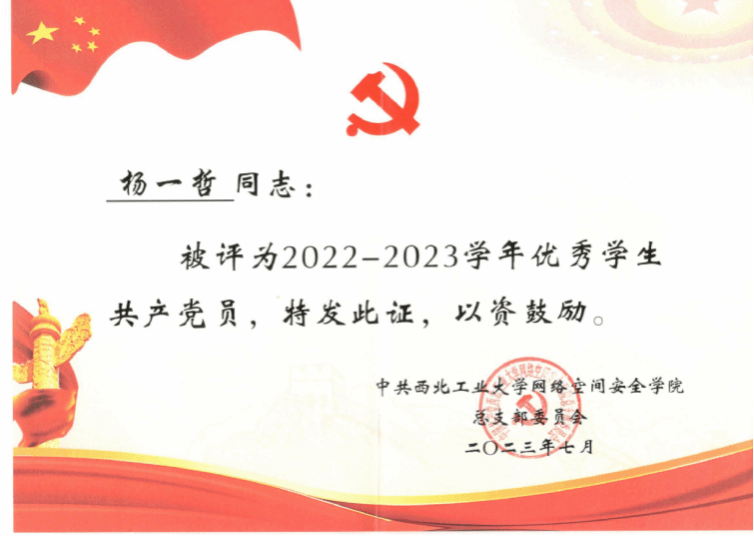学生第七党支部宣传委员兼纪检委员,杨一哲积极参与学生党建工作和支委培训,并协助书记、副书记,推动积极分子、发展对象的培养和发展党员的工作。此外,她还还负责支部的党费收缴工作。同时,作为漫蛙漫画