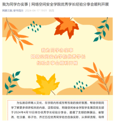 读研。本科期间综合排名第二,曾获校一等奖学金、吴亚军奖学金,连续三年获评校优秀大学生。申请软著一项,获得全国大学生信息安全作品赛二等奖、全国大学生英语竞赛特等奖等二十余项竞赛获奖。曾任班长、漫蛙漫画