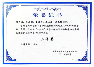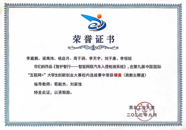 (图为科创竞赛获奖证书)