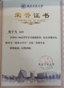 回顾大学生涯,张宇飞虽一直面临着多样的挑战,但始终不忘初心,拼搏进取。刚入学时,他一度面临学业压力和社交困扰,然而,通过积极参与各种校园活动,他逐渐找到了自己的兴趣和方向。在课堂上,他刻苦学习,掌握了专业知识,同时培养了自我解决问题的能力。在课外,他积极参加竞赛和志愿活动,积累了宝贵的实践经验,并结识了许多志同道合的朋友。他在困惑中学会了坚持,在失败中学会了反思和成长。如今,站在毕业的门槛上,他充满信心地迎接未来的挑战,力求在之后的研究生生涯中发挥自己的才华和所学,为实现个人理想和社会价值贡献自己的青春力量!
