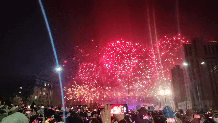 元宵节当晚,2023级本科生高品函同学参加了家乡的焰火晚会,夜空中,绚烂的焰火如梦似幻,那一刻,仿佛时间静止,所有的烦恼与压力都被烟花的光辉驱散。人群中,孩子们的欢笑声、长辈们的叮咛声交织在一起,构成了一幅温馨的画面,他也不禁思绪万千......