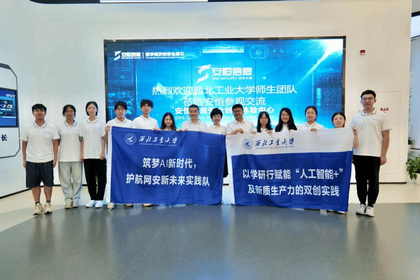 吴澄对实践队的到来表示热烈欢迎。他指出,西工大在网安人才培养方面与安恒的信息安全业务高度契合,合作基础深厚。公司将继续推进产教融合,提供实战锻炼机会,在科研竞赛、实践实习等方面开展更多项目合作,进一步深化双方在多领域的协同共进。强化学生的AI安全意识,助力科技创新和国家网信安全建设。
