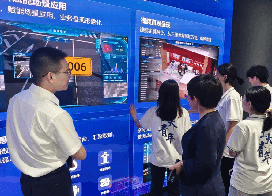 “筑梦AI新时代,护航网安新未来”暑期社会实践队在学院党委副书记杜瑶和带队老师仲于江的带领下,前往浙江大华技术股份有限公司创新展厅,对公司产品生产线及其智能制造产品进行观摩学习,旨在了解物联感知技术发展、大语言模型应用、智能化生产制造与便民设施的巧用,了解科技前沿发展新方向,拓展新时代新见识,探索创新发展的广阔前景。浙江大华技术股份有限公司招聘经理丁迪全程陪同、解疑答惑。