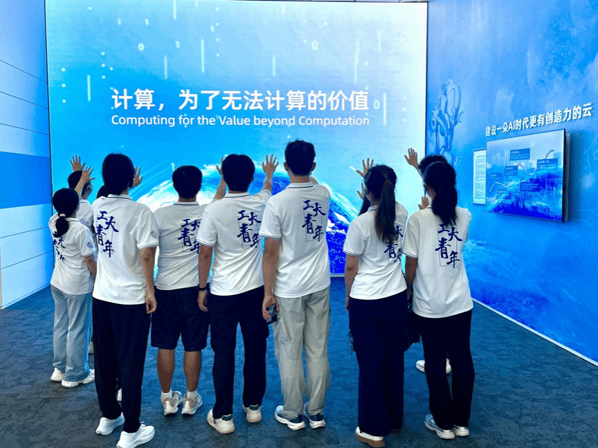 此外,讲解员着重介绍了阿里云的大模型产品“通义千问”“通义万相”以及“魔塔社区”AI体系,同学们深入了解了阿里云在科技前沿大模型方面的研究历程及产出成果。通过参观展厅,同学们深刻体会到了阿里云“计算,为了无法计算的价值”的核心理念。