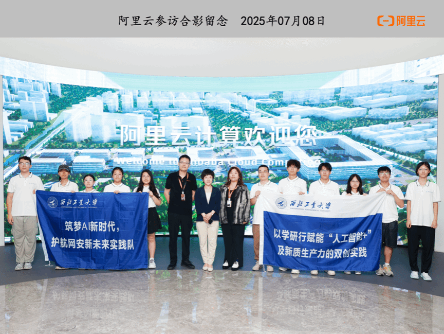 “筑梦AI新时代,护航网安新未来”暑期社会实践队在学院党委副书记杜瑶和指导老师仲于江的带领下,共同前往阿里巴巴云谷园区进行参观学习。此次活动通过实地探访行业标杆企业,助力学生构建产业认知框架,获取前沿技术视野与职业发展洞见。