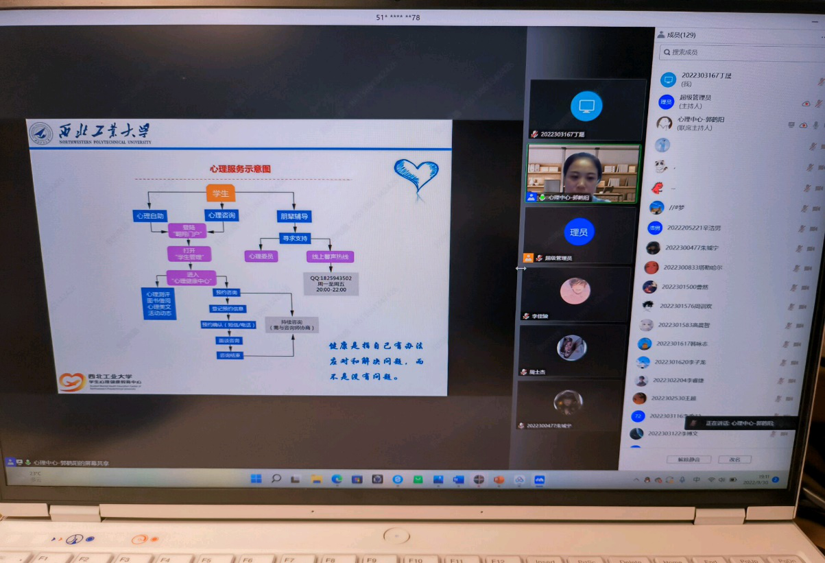 最后,郭鹤阳老师对心理服务流程做了进一步的讲解,并且着重强调了学生心理健康教育中心所能为学生提供的咨询服务。