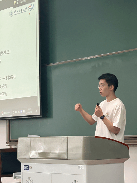 屈铎作为第一次的参赛小白,他毫无保留的分享了自己的独家心得--准备好问答库,即积累来自于各行各业评委的问答,在现场的问答环节,除了单一的答案呈现,更要展现自己的知识储备和自信。屈铎同学现场示范了三段回答:“问题背景+问题核心+未来展望”。同时,他提到除了技术问题,也要准备商业问题,比如从微信公众号了解和关注行业痛点。此外,他指出自信是参赛的关键因素,经验不足和畏难情绪的出现非常正常,只有在挫折中得到锻炼,才会有所成长。屈铎同学的分享给了各位同学极大的鼓舞。
