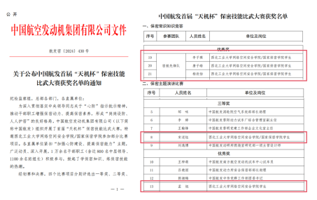 喜报!西工大网安学子在中国航发首届“天机杯”保密技能比武大赛中荣获佳绩!