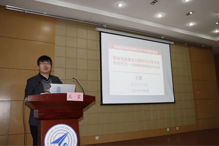 下午2点,学院党总支书记王震以《网络强国建设与新时代大学生的使命担当——以网络空间智能对抗为例》为题,为全院学生党员和入党积极分子讲授了如何践行新时代网安大学生的使命担当。