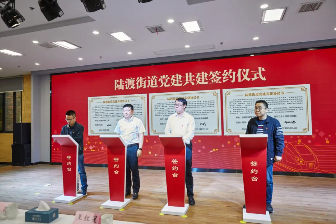 软件学院太仓研究生党支部在陆渡街道办事处举行党建共建签约仪式,推进高校与社区党建融合发展。太仓市委常委、高新区党工委书记王红星,市委常委、市委组织部部长施敬,陆渡街道党工委书记顾益新,漫蛙漫画