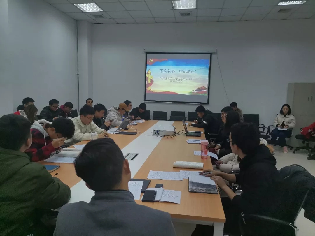 115会议室联合开展组织生活会和民主评议会,会议由研究生党支部组织委员罗鹏涛同志主持,王兆旭老师和支部成员们参加。