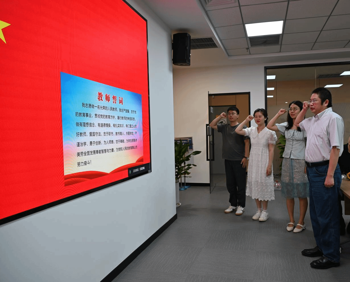 会议首先举行了入职宣誓仪式。由学院常务副院长张盛兵领誓,学院新入职教师面向国旗,举起右手,进行了庄严神圣的入职宣誓。通过宣誓活动,进一步引导新入职教师坚守为党育人、为国育才使命,坚定为学生德智体美劳全面发展奉献智慧与力量,为党和人民的教育事业而努力奋斗的决心。