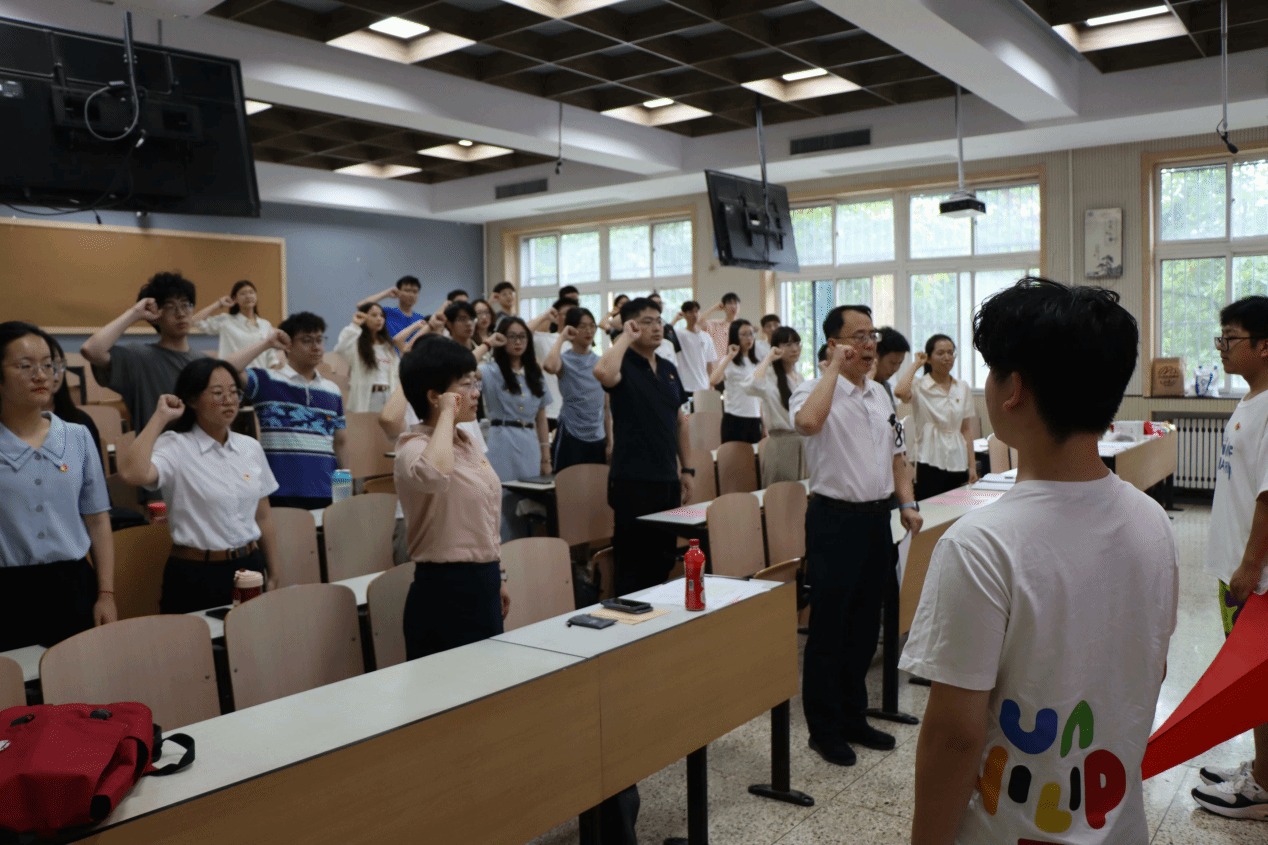 会议在庄严的国歌声中拉开序幕。随后由学院党委书记张文涛领誓,与会人员共同重温了入党誓词。
